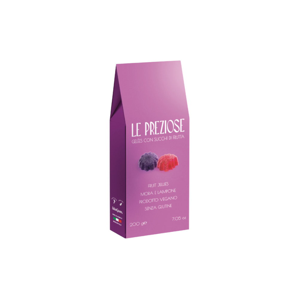 Italienske gelefrukter laget av ren fruktjuice fra bringebær & bjørnebær.